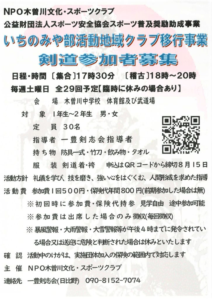 現在、当クラブにおいて実施している休日の部活動地域クラブ移行事業の一覧です。